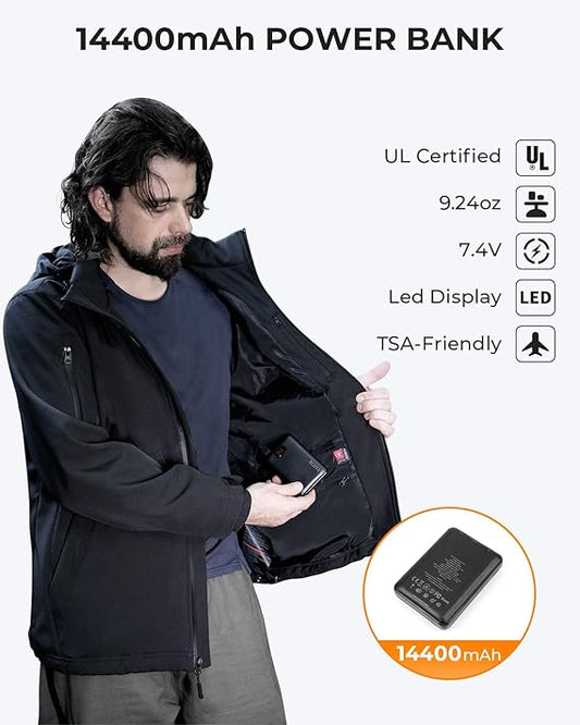 Manteau homme Veste chauffante avec batterie 7,4 V/14400 mAh, manteau d'hiver d'extérieur BCOTE